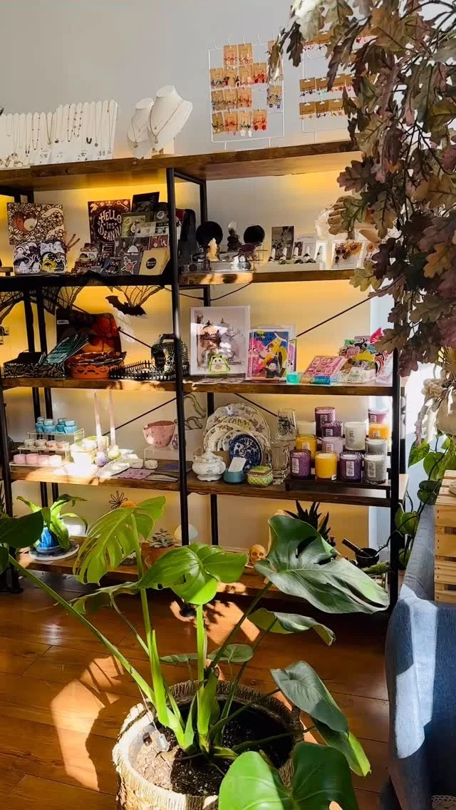 Inside our boutique, you’ll find a curated mix of goods from both artisans and carefully selected small businesses. Our collection includes handmade jewelry, original artwork, ceramics, prints, greeting cards, stickers, plants, home decor, leather goods, woodwork, textiles, skincare, upcycled pieces, accessories, specialty gifts, and thoughtfully sourced products.